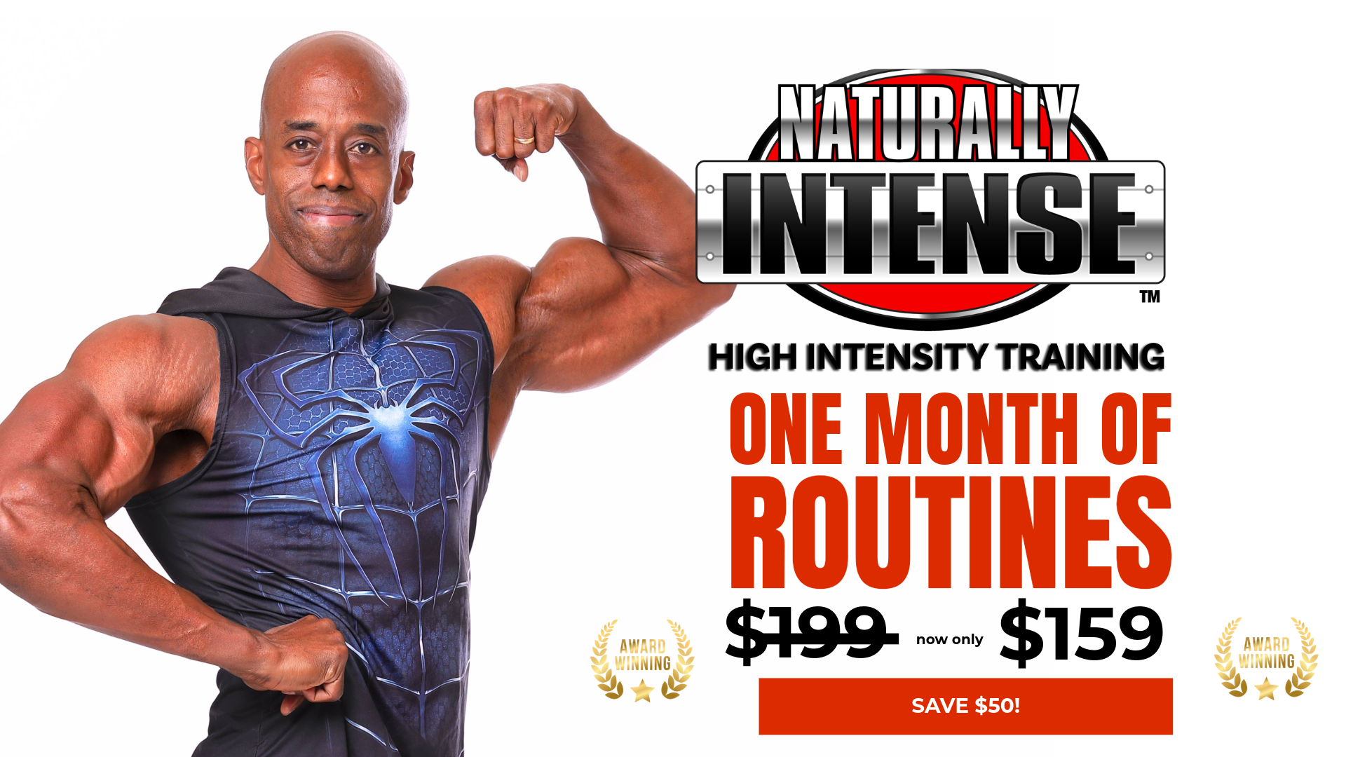 Package includes one month of Naturally Intense High Intensity Training Routines (2 routines)Â